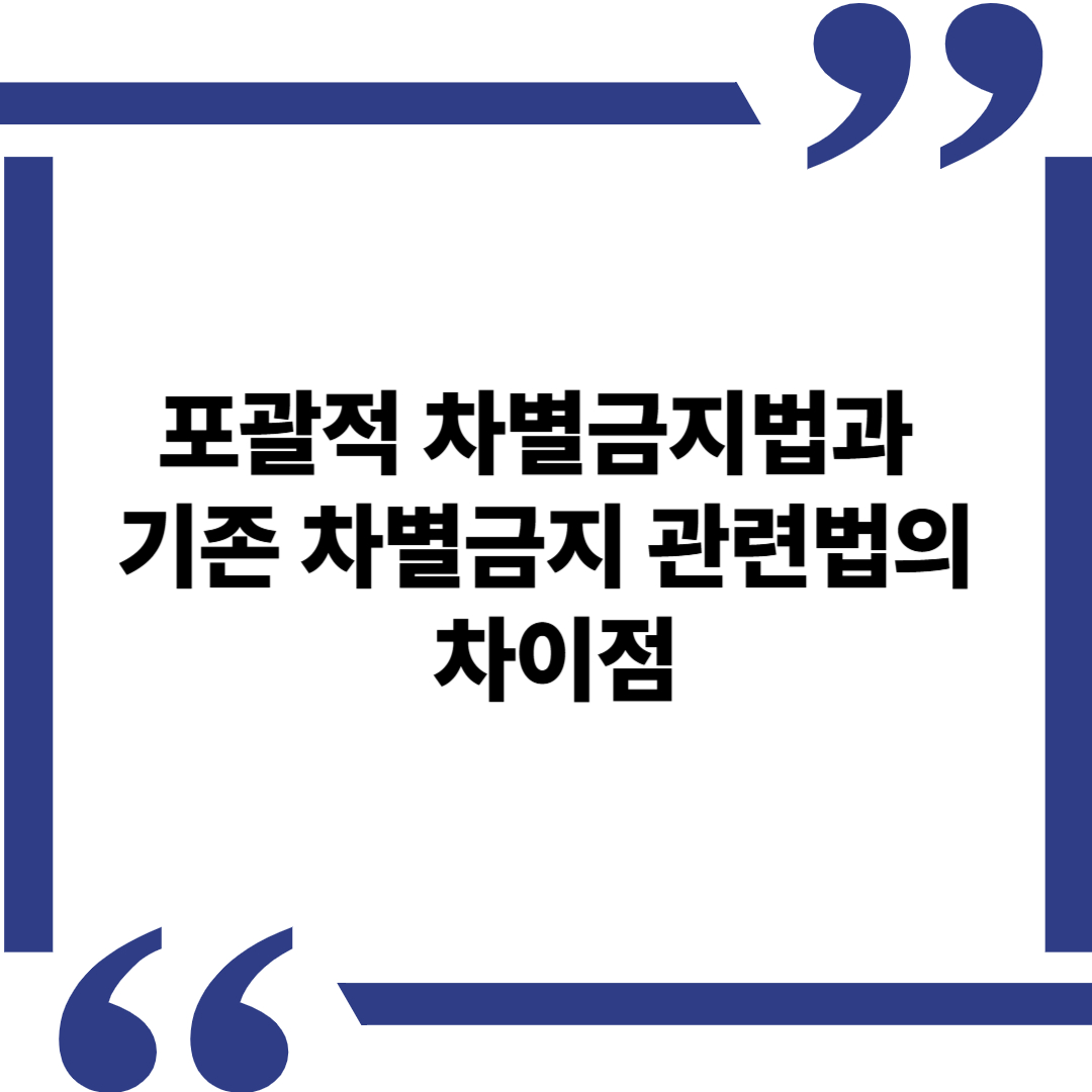 | 구분 | 기존 차별 관련법 | 포괄적 차별금지법 |