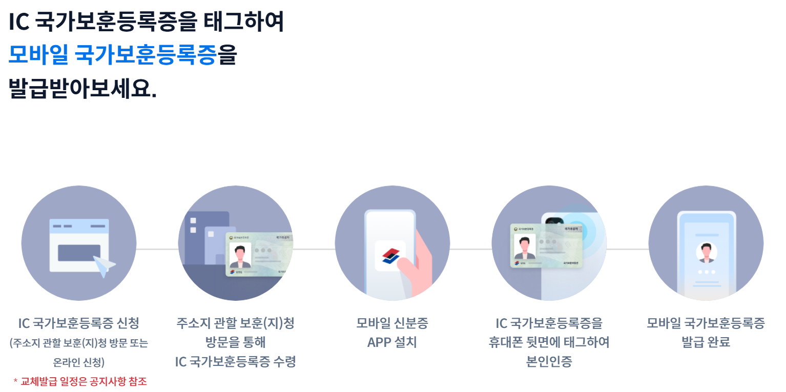 - 관할 보훈(지)청에서 IC 국가보훈등록증 실물 카드 발급