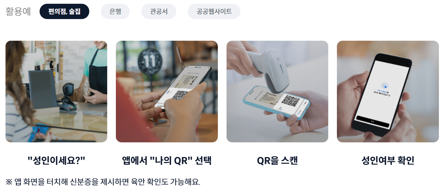 - 민간 서비스: 편의점 성인 인증, 배달 서비스 신분 확인, 온라인 회원 가입