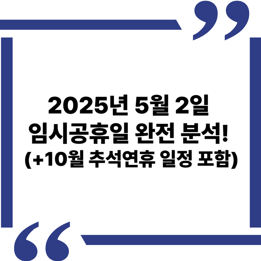 2025년 5월 2일이 임시공휴일로 지정된다면, 국민 대다수가 체감하는 '황금연휴의 정점'이 될 수 있습니다. 🌟