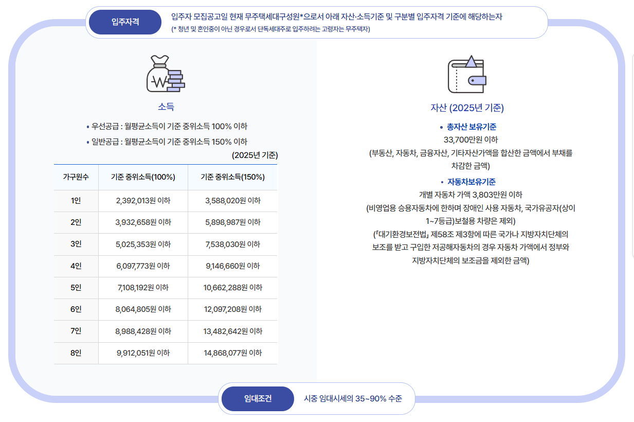 - 무주택자 + 소득·자산 기준 확인